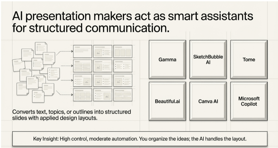 Meanwhile, presentation tools are becoming more interactive, blending slides with AI-generated visuals and storytelling.